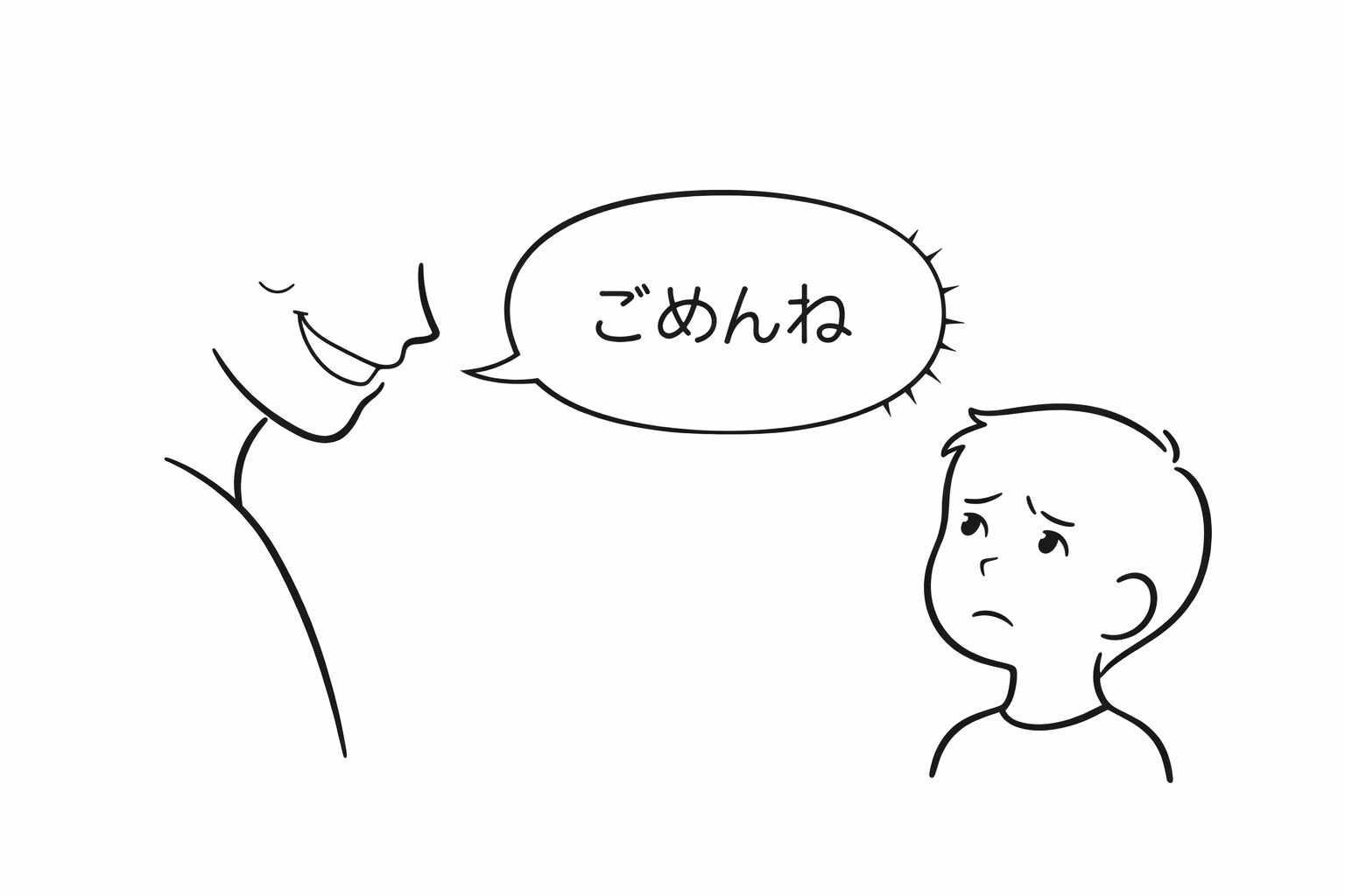謝罪の言葉とは裏腹に、態度や口調で「私は悪くない」「謝りたくない」というメッセージを送っています。子供は親の不機嫌さに耐えきれず、「もういいよ」と言わざるを得なくなります。